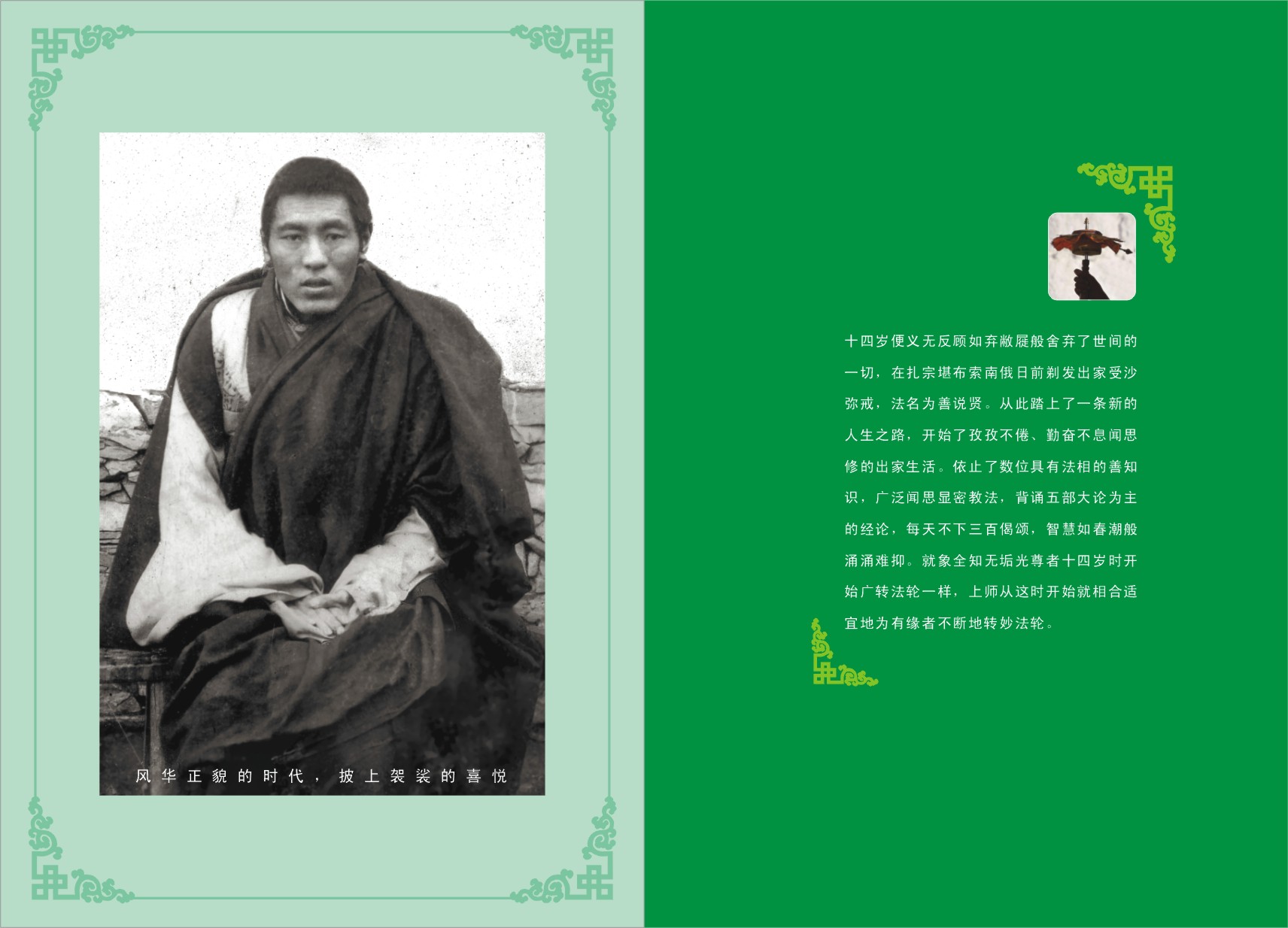 大持明者嘎绕多吉降临人间弘扬大圆满时的母亲——德丹旺母;阿阇黎蒋花西宁的首座弟子——如意贤婆罗门;莲花生大士在世时,于印度八大尸林继承其传密法的法太子——释迦莫扎以及尼泊尔的哲纳麦扎,藏地二十五大弟子之一的降魔金刚;后弘时期克什米尔的措普大译师;大持明者郭吉得澈坚、乐旦多吉;阿革旺波(语自在);伏藏大师班玛陈列,伏藏大师列绕朗巴。