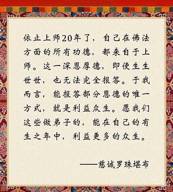 即使有一天我已不在人世,我期望我的弟子们能够坚定不移地修持并弘扬佛法,力争将佛法的智慧之炬一代代地传下去,这就是对我最好的纪念与报恩。