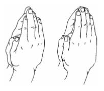 不仅如此,而且顶礼的时候双手必须宛如含苞待放的莲花一般空心合拢,绝不可以掌心毫无空隙地并拢或者仅仅以指尖接触等等。如《大解脱经》云:“如莲花待放,合掌于顶上,无量身云聚,敬礼十方佛。”如《功德藏》中说:“并非随意身顶礼,心间合十恭敬相,合掌当如莲花苞,或如嘎乌盒之形。”接着依次下来,合掌在头顶清净身障,合掌在喉间清净语障,合掌在心间清净意障,然后五体投地。所谓的五体是指前额、两手掌与双膝。五体着地而礼拜有清净五毒烦恼的障碍、获得身、语、意、功德、事业五种加持等必要,因此我们要这样来做。站起身时腰应挺直,身体站立双手合掌,再按照前面那样重新匍匐顶礼。如果双手没有按照要求认真合掌而只是甩动一下,膝盖及额头不接触地面仅仅弯一下身,站起来时腰也不端端正正挺直,这样弯弯曲曲来作礼等举动都是大不恭敬的表现,所以绝对不允许。佛经中说:以弯曲顶礼的异熟果,将来转生为驼背者,也就是背上长大瘤的侏儒佝偻之人。我们是希望获得功德而顶礼的,如果转成这样奇形怪状的丑陋身体,顶礼也就大可不必了。所以,顶礼的数目不在于多,最重要的是每做一次礼拜都要尽力做到正规、如法、准确。如果考虑顶礼轻松省力而在陡峭的山坡或者某种依靠物的上面等顶礼,没有少许实义。
